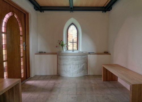 In der ehemaligen Sakristei auf der Nordseite unserer Kirche befindet sich eine kleine Andachtskapelle. Außerhalb von Gottesdienst- und Öffnungszeiten der Kirche lädt hier an allen Tagen des Jahres rund um die Uhr ein Raum der Stille zu einem Gebet, einer Andacht oder einem Moment der Besinnung ein. Fürbitten aus dem Gästebuch werden von der Pfarrerin aufgenommen. Auch die Andachtskapelle verkörpert somit das Prinzip der „offenen Tür“, so wie es im Logo unserer Kirchengemeinde St. Thomas zu sehen ist.