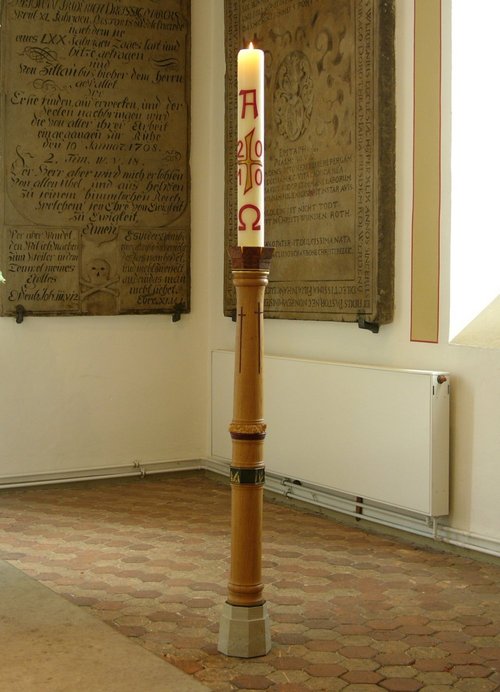 Die Osterkerze spielt als liturgischer Gegenstand in unseren Gottesdiensten eine wichtige Rolle. Ihr Licht steht für die Hoffnung auf die Auferstehung.